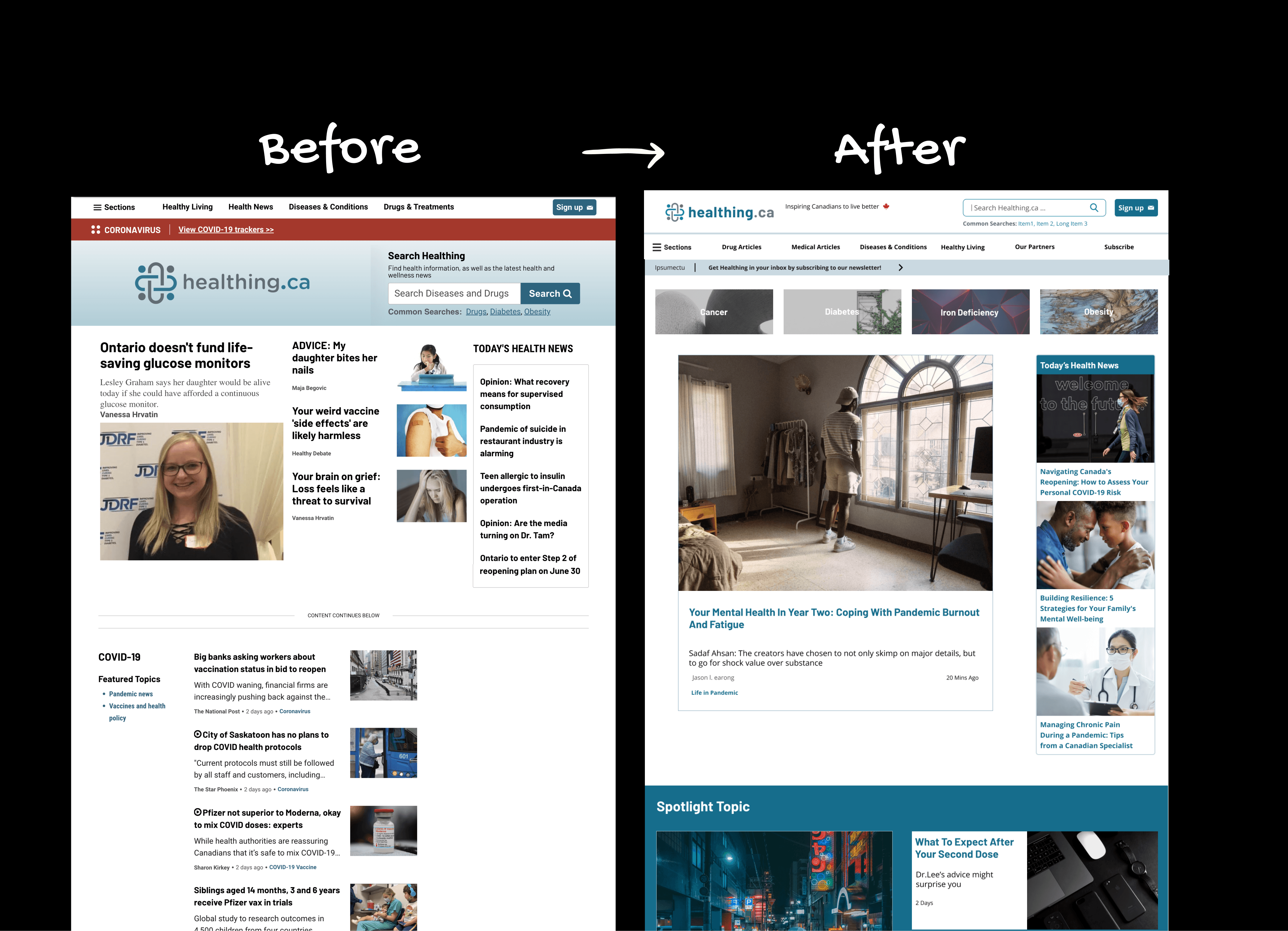 In 2021, as misinformation spread faster than the virus itself, my team was tasked with transforming an outdated health news website into a modern, trustworthy resource for millions of Canadians.